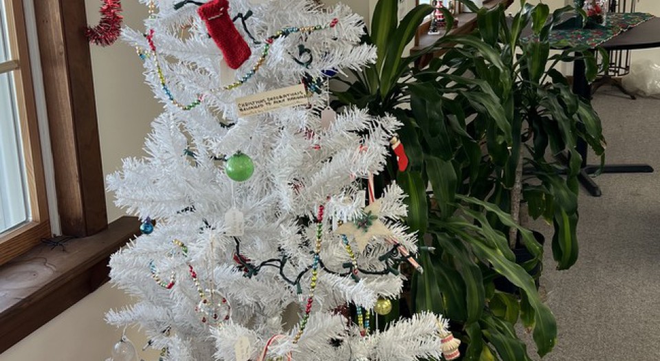 Next, we have a tree decorated with Christmas Ornaments that belonged to Ann Mangold (nee Gilbert).